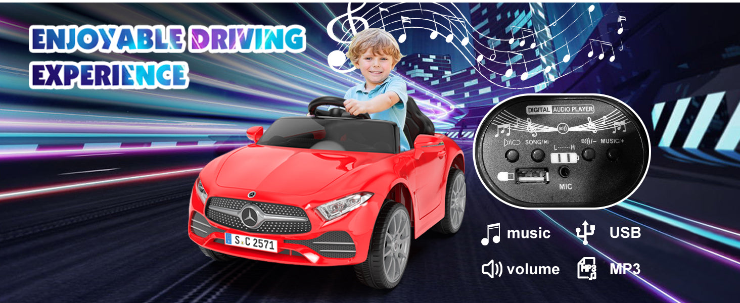 - More Functions: Built-in music and USB port to play your own music, there is a horn on the steering wheel, forward/backward, turn right/left, brake freely; Speed shifting and real car engine sound.Double drive big battery,speed up to 3km/h.