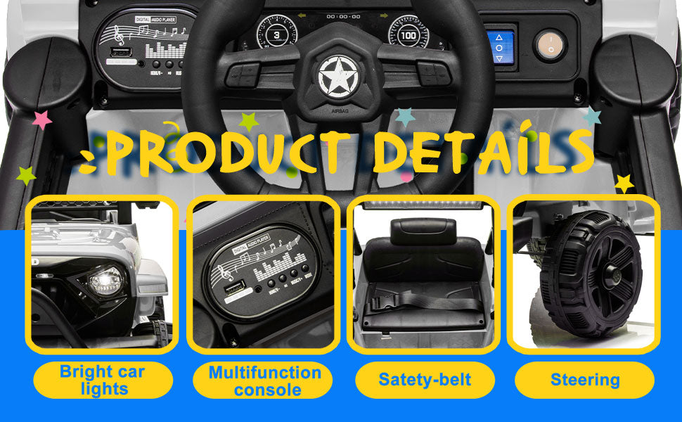 - 🎁 【Durable and Safe Design】Made from premium materials, this ride-on car measures 37.79"L x 23.22"W x 22.44"H and can be used indoors and outdoors. It features a safety belt and a stable design to ensure children's safety. With a weight capacity of 66.14 lbs, the durable construction and safety features make it a perfect Christmas or birthday gift for your child or grandchild, offering long-lasting fun and reliability.