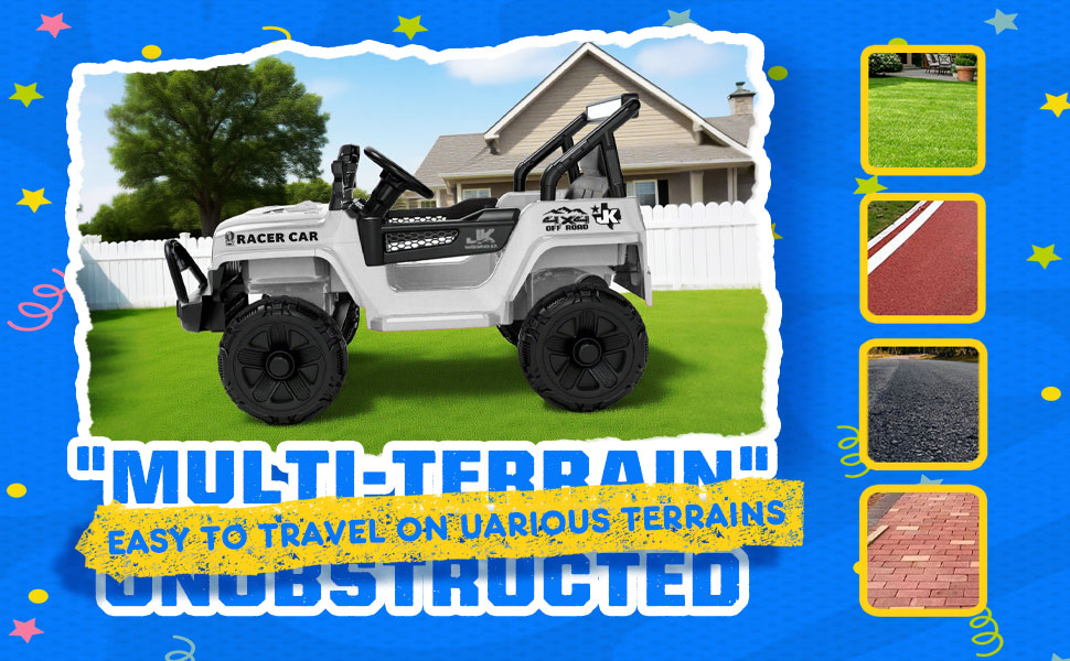 - 🚗 【Advanced Four-Wheel Shock Absorption】This 12V ride-on truck features an advanced four-wheel shock absorption system that minimizes vibrations on uneven surfaces, providing a smooth and comfortable driving experience. The Kid's Ride On Car has a speed range of 0-3.11 MPH, allowing kids to enjoy a smooth and pleasant journey on both flat roads and bumpy paths.
