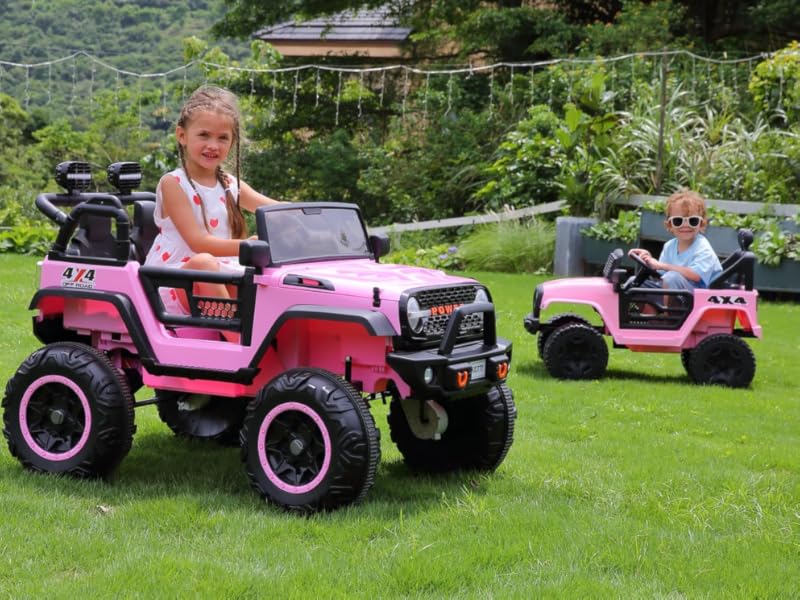 - [Switchable 4WD/2WD with Powerful Motor] This 24V kids electric car is equipped with a 4X100W motor, which can switch 2WD/4WD at will, providing strong and stable power to easily cross all kinds of obstacles. In 4WD driving mode, the speed of this ride on truck can reach up to 6 mph.