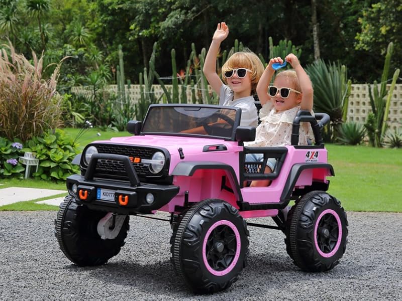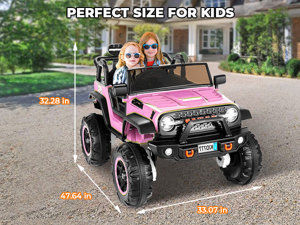 - [20 Inch Spacious 2-Seater] This 24V 2 seater ride on toys car features a true two-seater design with a spacious 20-inch seat that can easily accommodate two small children and below or just one older child from 4-8 years old to drive. Maximum weight capacity 110KG.