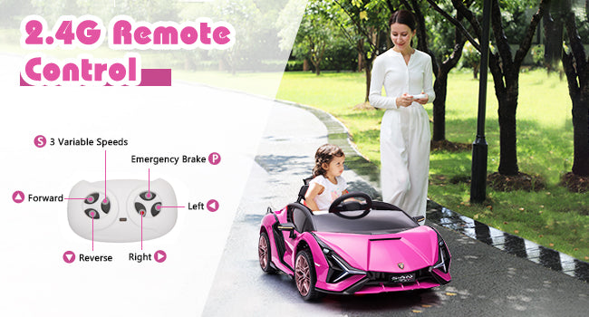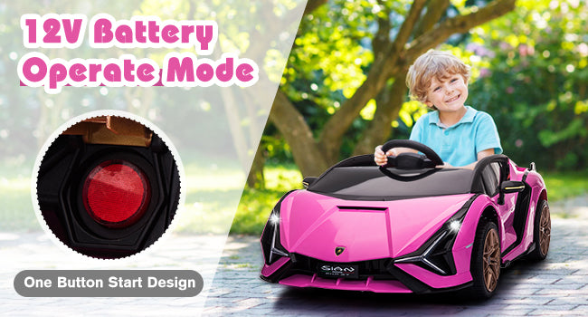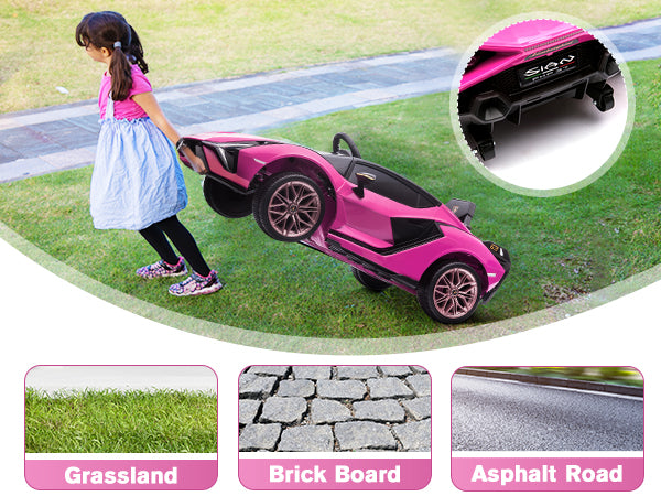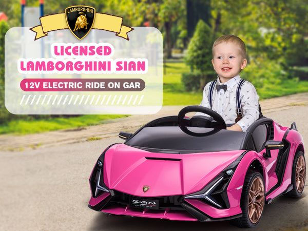 Electric Ride On Car Toy for Kids to Drive, 12V Battery Powered Licensed Lamborghini SIAN with Parent Remote Control for Toddlers 3-6 Years w/Functions Spring Suspension/Horn/LED