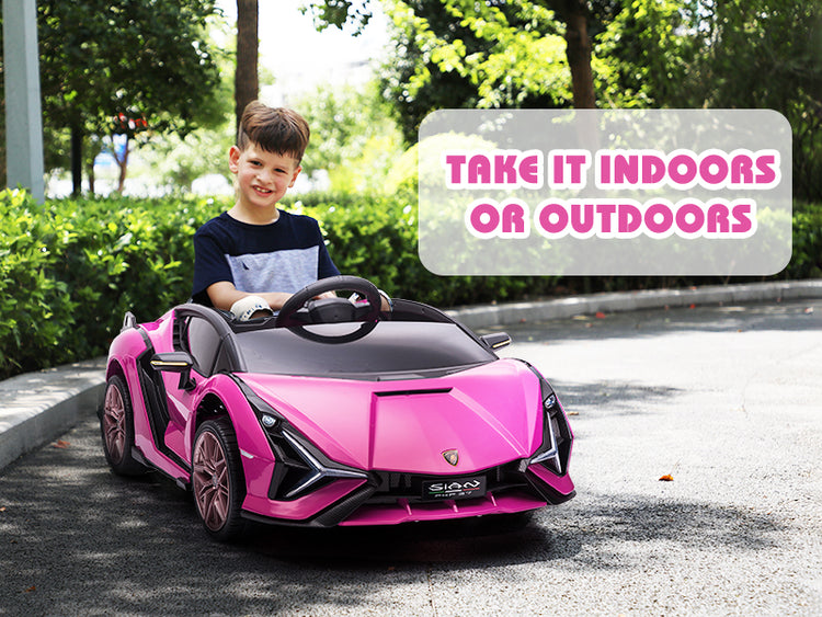- REALISTIC DRIVING EXPERIENCE: This Officially Licensed Lamborghini Sian ride-on car comes with LED headlights, a horn and realistic engine sounds. The hydraulic-powered doors add to the authentic design, providing a realistic driving experience for your child.